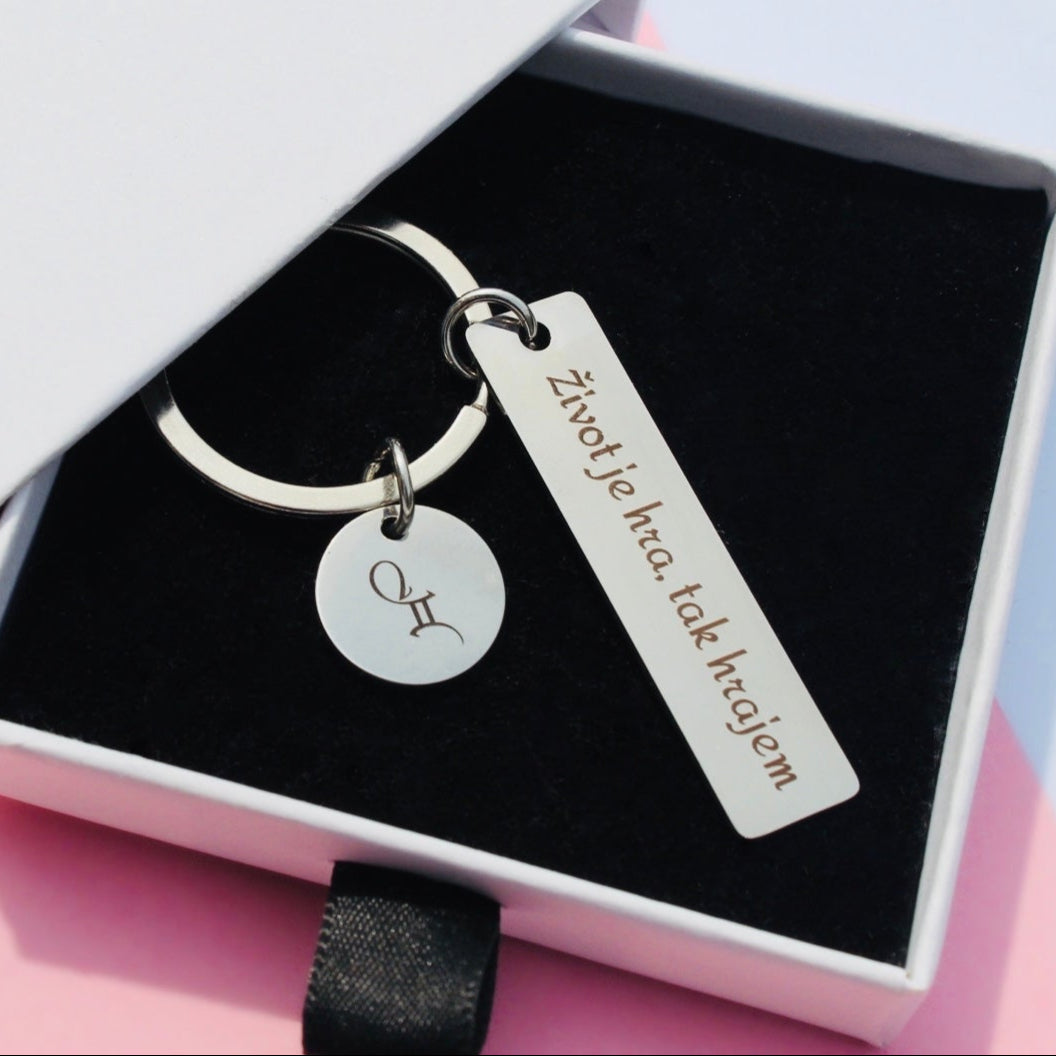 Originální gravírovaná klíčenka z chirurgické oceli.